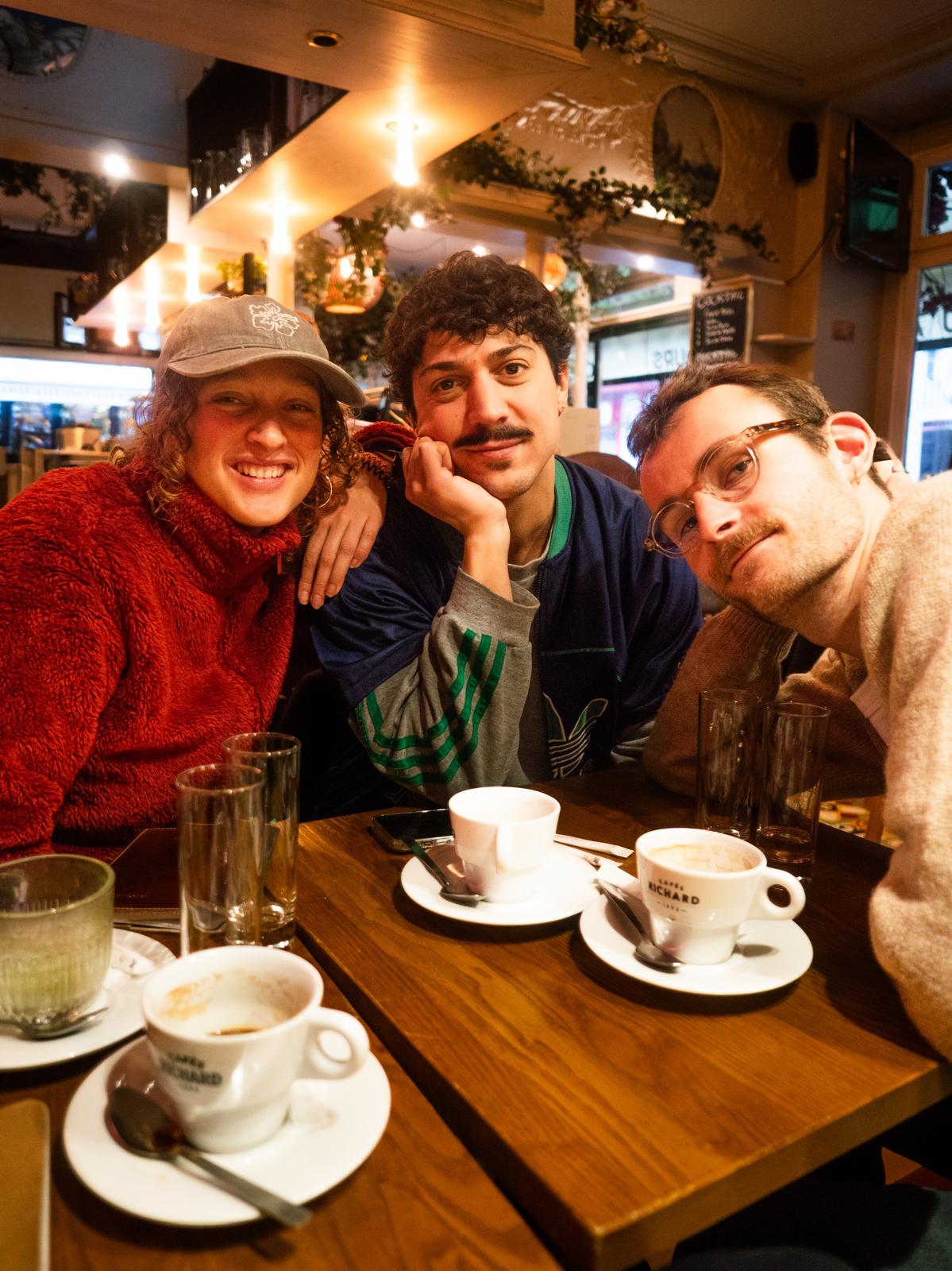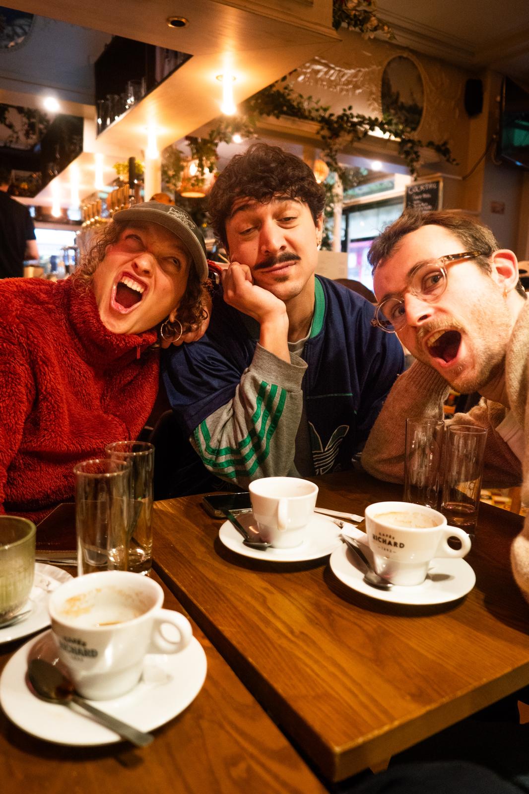 Au printemps 2025, dans les cafés parisiens (à Stalingrad), les trois humoristes construisent leurs voix.